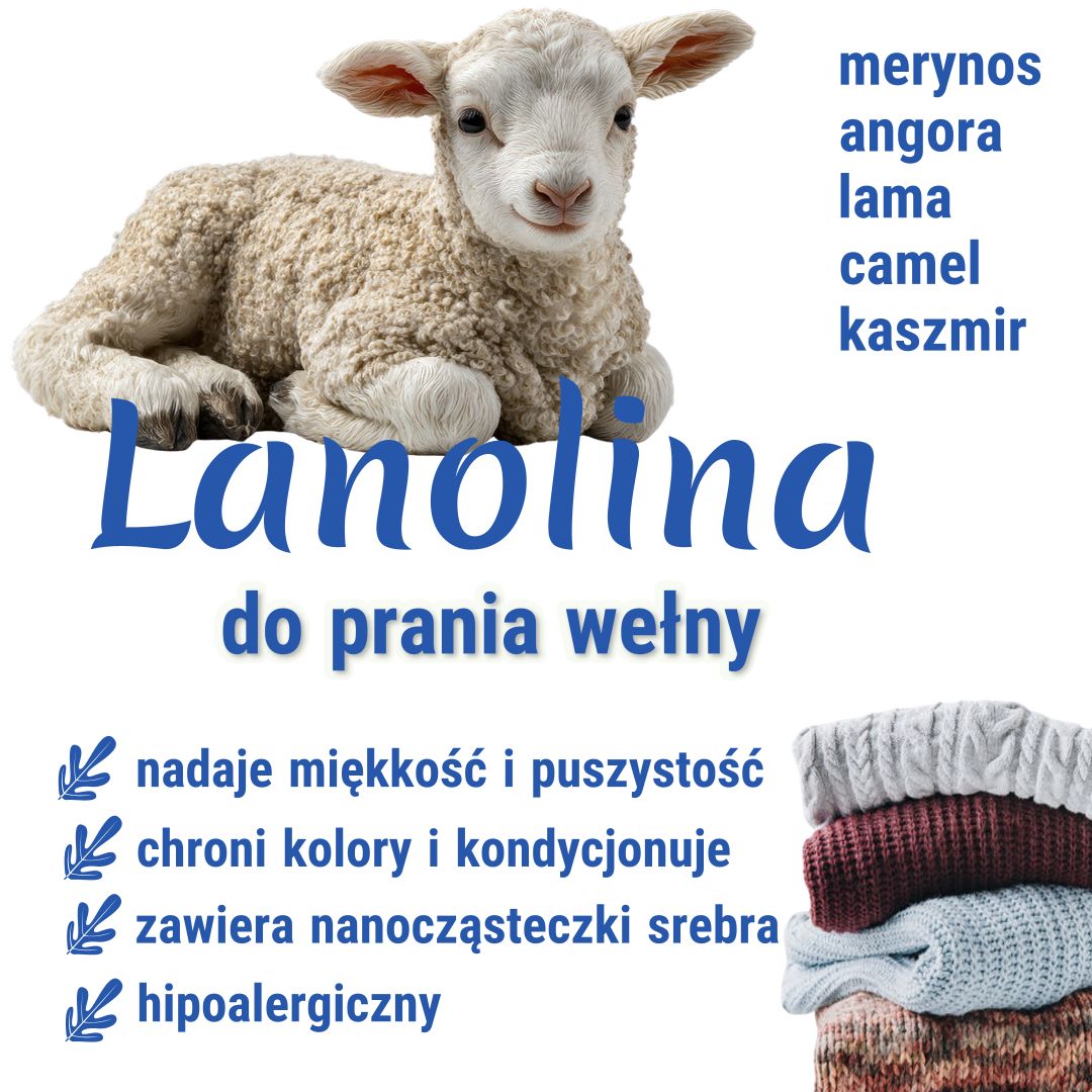 Naturalną lanolinę pozyskuje się w procesie czyszczenia owczej wełny. Jest to wosk w postaci lepkiej pasty o swoistym zapachu. Stworzona z niej wodna mikroemulsja jest transparentną, gęstą cieczą o bursztynowo – opalizującym kolorze. Tak przygotowana lanolina jest użyta w tym płynie, by zapewnić wyrobom wełnianym maksymalną regenerację.