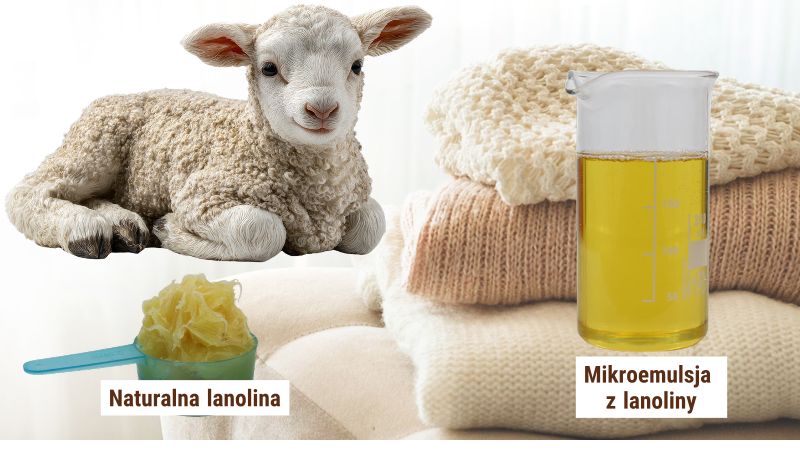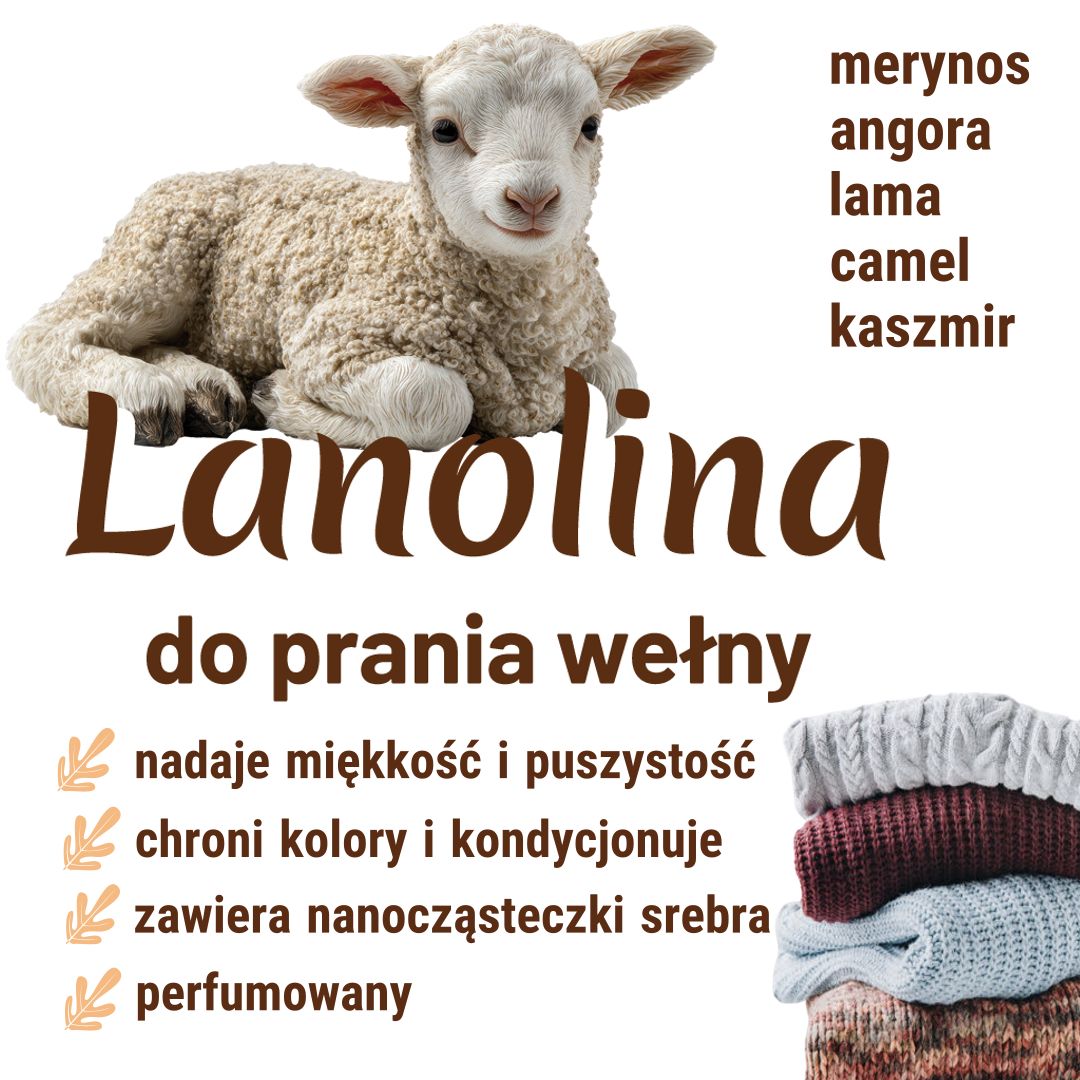 Naturalną lanolinę pozyskuje się w procesie czyszczenia owczej wełny. Jest to wosk w postaci lepkiej pasty o swoistym zapachu. Stworzona z niej wodna mikroemulsja jest transparentną, gęstą cieczą o bursztynowo – opalizującym kolorze. Tak przygotowana lanolina jest użyta w tym płynie, by zapewnić wyrobom wełnianym maksymalną regenerację.